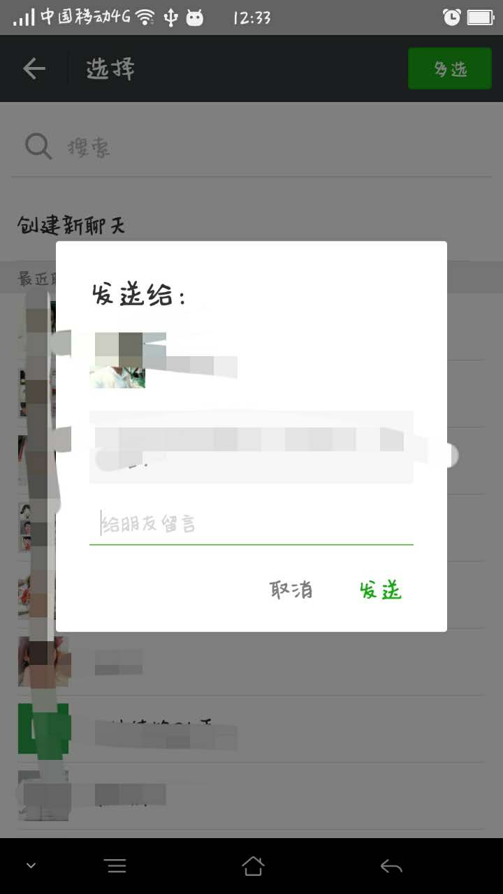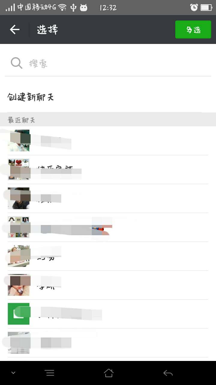 四、如果这个列表里没有你想找的那个(我说的意思是你要把这个红包转给另一个最可靠的人,也就是先让他帮你收到红包,然后再还给你.当然,,最好还是发给自己的另一个账号里..同时有几个账号,而且还互为好友的.这样会有很多安全好处的)点(创建新聊) 找到你想转发给的人..然后点发送...这样这个红包就会被转发到这个账号上...通知对方赶紧领取,或自己去另一个号领取,然后再发回来.这个时候就是纯拼速度了..速度越快,你红包被收回的机会就越大了.