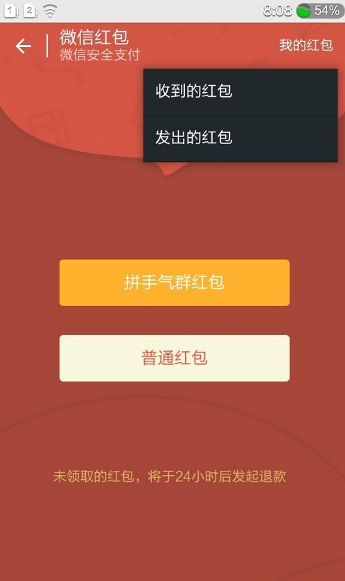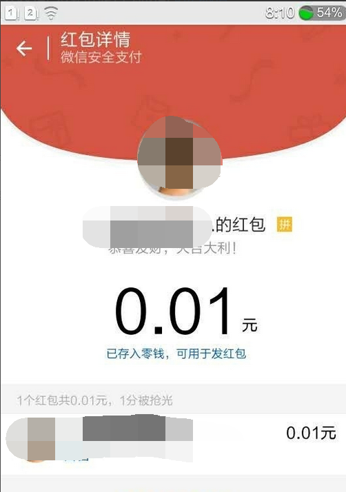 八、如果发出去后你后悔了...你可以马上先点那个红包...这样就可以直接把红包再抢回来了..而且是一分不差的抢回来.