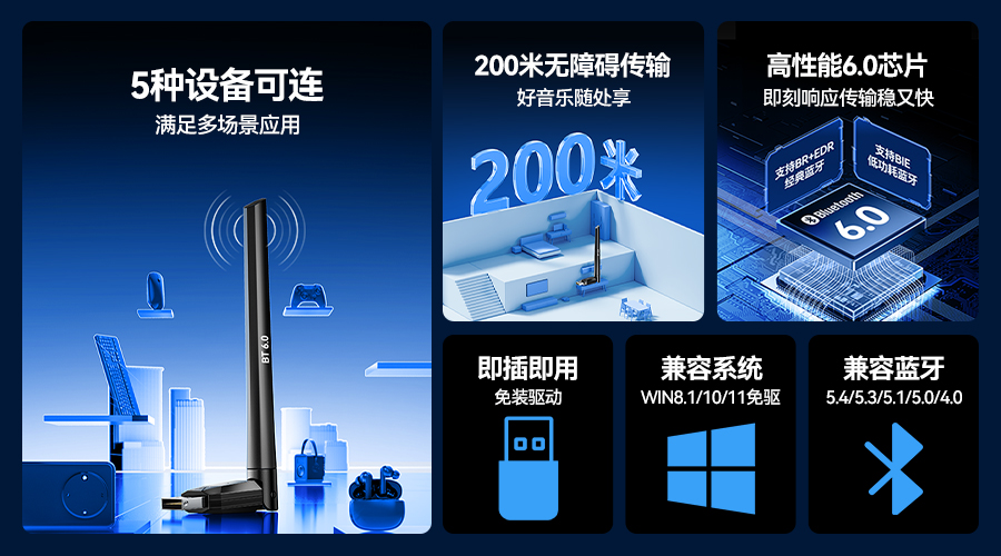 内置增强天线、200米无障碍传输、超清音质,还免驱动,即插即用。
