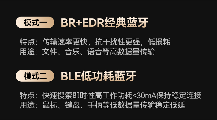✅ 双模式切换:经典+低功耗,所有场景都能打;